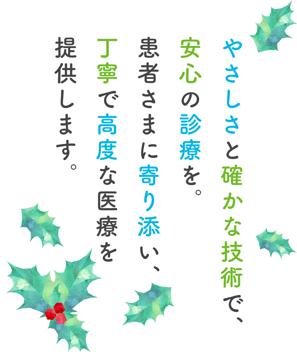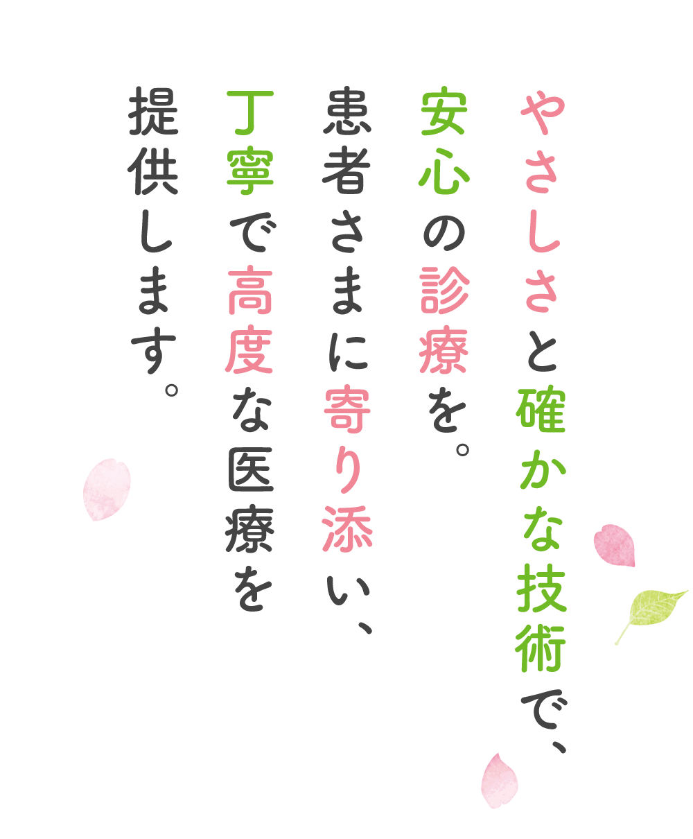 技術だけでなく、患者様のケアを第一に考えた心に寄り添う丁寧・親切な診療で、
