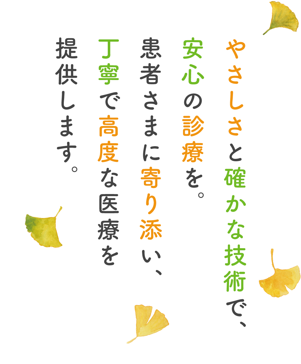 技術だけでなく、患者様のケアを第一に考えた心に寄り添う丁寧・親切な診療で、